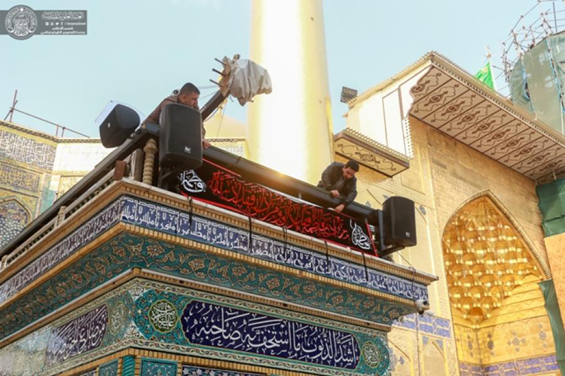 بمناسبة قرب حلول ذكرى السيدة فاطمة الزهراء {عليها السلام} باشرت المِلاكات الفنية في العتبة العلوية المقدسة بنشر قطع السواد في أرجاء الصحن الحيدري المطهر.