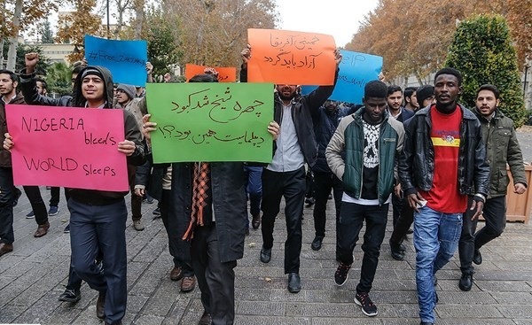 ايران-الكوثر: نظم حشد من طلاب الجامعات الايرانية تجمعا اليوم السبت أمام مبنى وزارة الخارجية في طهران أعلنوا فيه تضامنهم مع زعيم الحركة الاسلامية في نيجيريا الشيخ ابراهيم زكزاكي .