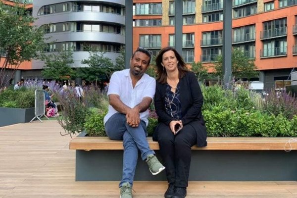 (صورة تجمع "غيث التميمي" مع " تسيونيت فتال كابرفار" زوجة رئيس أركان الجيش الإسرائيلي السابق "يوسي كابرفار")