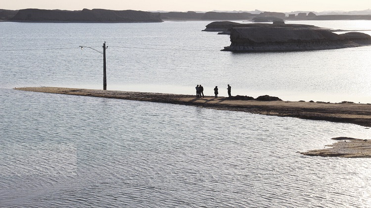 ظهرت بحيرة كبيرة، بسبب هطول الأمطار والسيول التي اجتاحت المحافظة قبل 8 اشهر وتحولت البحيرة الى ملاذ للطيور المهاجرة.