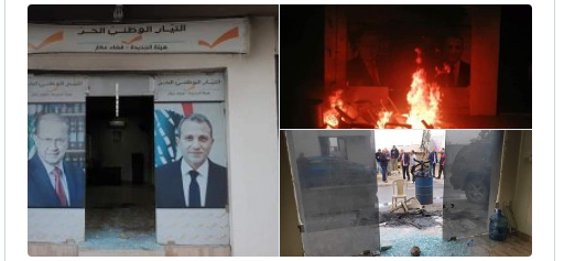 أقدم مجهولون، على حرق مكتب تابع لـ "التيار الوطني الحر" وآخر يعود لـ "تيار المستقبل" في عكار شمال لبنان.