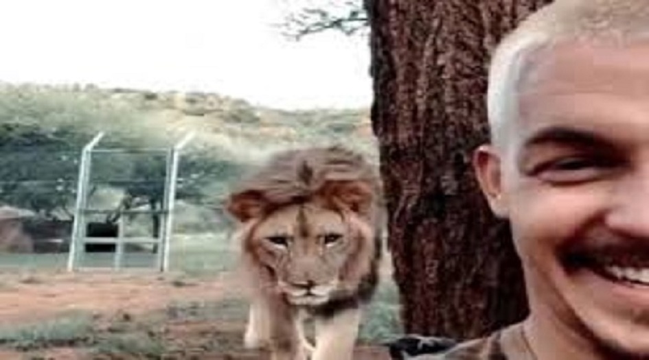 ويظهر دير في الفيديو وهو متكئ إلى جذع شجر ويصور نفسه على طريقة السيلفي بينما كان الأسد "ديكستر" يستعد للهجوم عليه من الخلف، وقال دير: "يعتقد أنني لم أره".