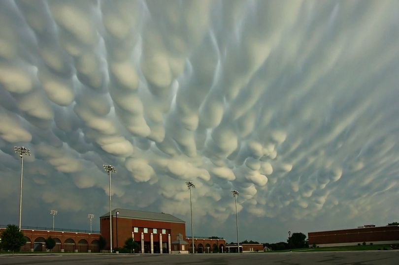 وتسمى الغيوم الظاهرة'>الغيوم الظاهرة في الصورة التي نشرتها ناسا، بـ"سحب الماماتوس" والتي غالبا ما تتشكل في هواء مضطرب بالقرب من العواصف الرعدية، وبحسب مكتب الأرصاد الجوية، فهي من بين أكثر أشكال السحب غرابة وتميزا بفضل سلسلة "الانتفاخات" أو "الجيوب" الخارجة من قاعدة السحابة.