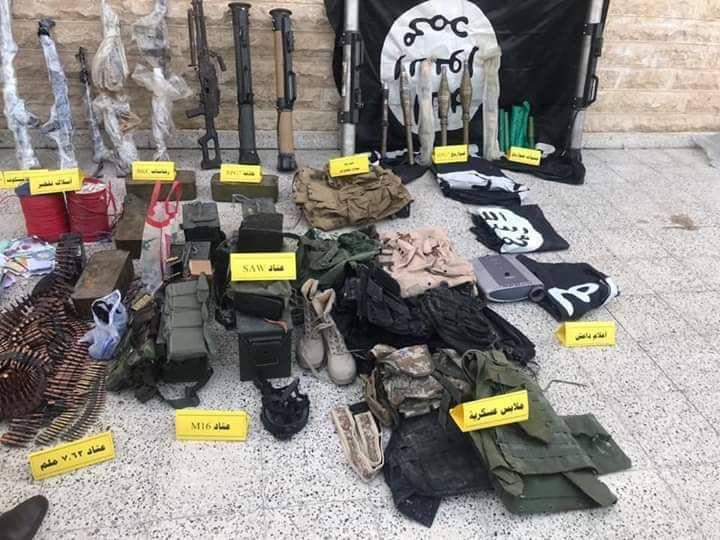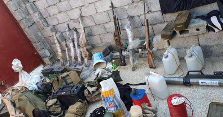 كما تم ضبط مستودع للأسلحة والأعتدة داخل مخبأ سري في سرداب المضافة يحتوي على المواد التالية :