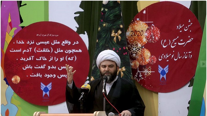 ايران-الكوثر: تمّ الاحتفال بمولد السيد المسيح(ع) وبداية العام الميلادي الجديد في مجمّع "وليعصر(ع)" التابعة لجامعة "آزاد" الإسلامية في العاصمة الايرانية طهران، وذلك بمحاضرة لرئيس منظمة الاعلام الاسلامي في إیران "الشیخ محمد قمي".