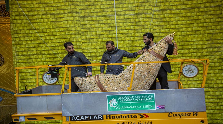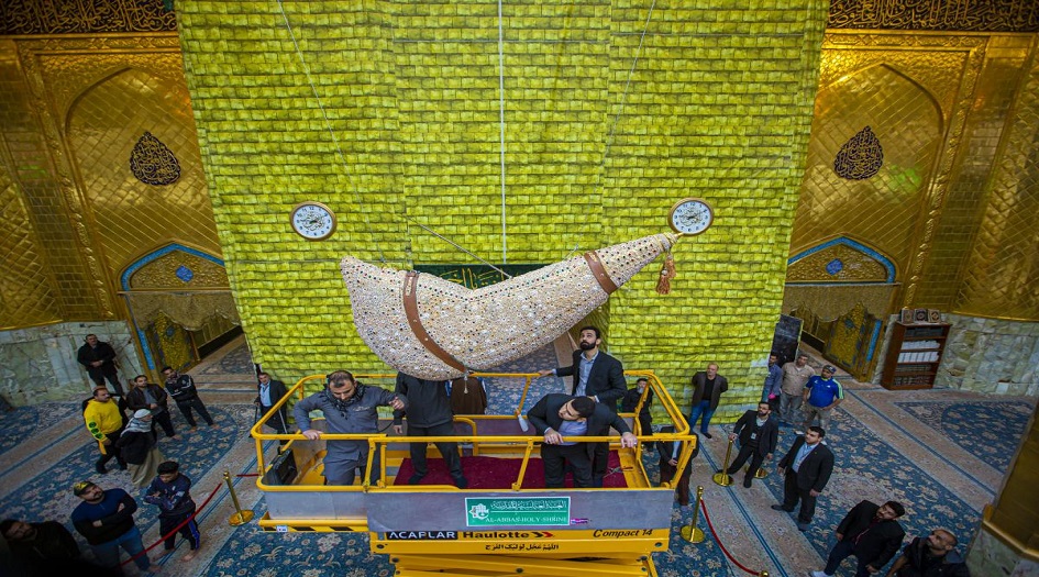 وأضاف القريشيّ: "إنّ هذه القِرْبة صُنِعت من قِبل أحد المحبّين لأبي الفضل العبّاس(عليه السلام) وهي عملٌ يدويّ، وقد تمّ تثبيتُها في منتصف مدخل الحرم الطاهر من الأعلى بواسطة أسلاكٍ معدنيّة ذات ألوانٍ غير بارزة، لكي لا تؤثّر على المكوّن العام للقِرْبة من ناحية اللّون وسطوع الأحجار".