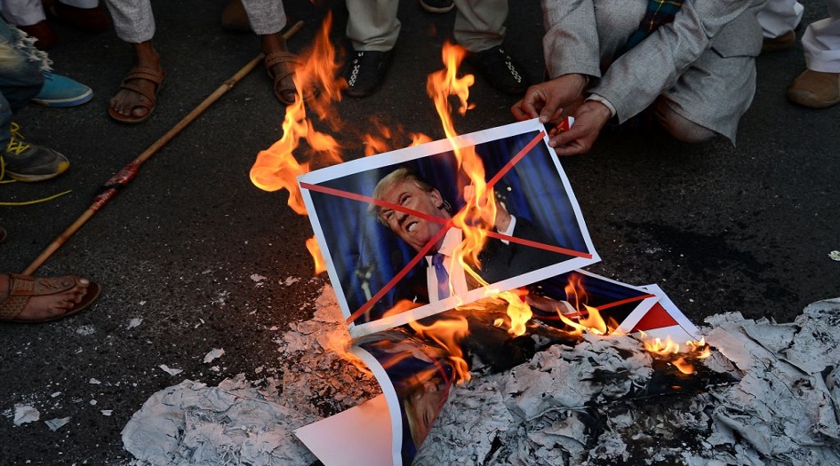 وحيث قام المحتجين الغاضبين بحرق البوابة الخارجية للسفارة الامريكية في بغداد فيما قامت بعض المجاميع بدخول باحة السفارة على وقع ارتفاع الشعارات المنددة بلاعتداء الاميركي على الحشد الشعبي.