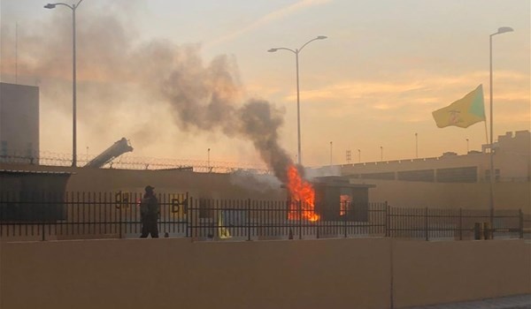 وقال المصدر إن "المحتجين قاموا بحرق الباب الثاني للسفارة الأمريكية في العاصمة بغداد". وكان مصدر أمني قد أفاد في وقت سابق من، اليوم الثلاثاء، بنشر قوات عراقية خاصة قرب السفارة الأمريكية في العاصمة بغداد. واقيمت، صباح اليوم الثلاثاء، مراسم شعبية وسط العاصمة بغداد، لتشييع شهداء الحشد الشعبي الذين سقطوا نتيجة القصف الأميركي في محافظة الأنبار مساء أمس الأول الأحد، واقتحم المشيعون المنطقة الخضراء وتوجهوا إلى مبنى السفارة وهم رافعين الأعلام العراقية وأعلام الحشد الشعبي، احتجاجاً على القصف الأمريكي.