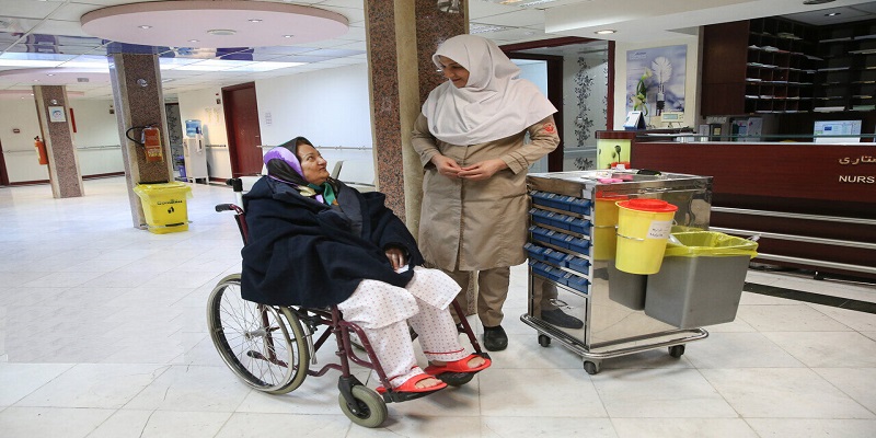 وتشير الصور الى الممرضين والممرضات الذين يعملون في مستشفى ساسان الخاص بعوائل الشهداء والمعاقين في طهران.