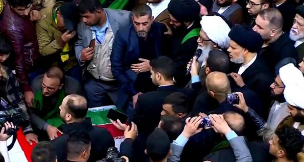 وأم المرجع الديني الكبير الشيخ بشير حسين النجفي صلاة الجنازة على ارواح شهداء الحشد الشعبي بمشاركة السيد محمد رضا السيستاني نجل المرجع الديني الاعلى في العراق آية الله السيد علي السيستاني.