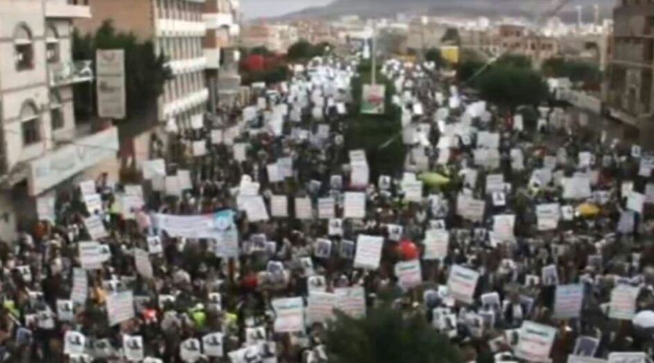وتقاطر المحتشدون من مختلف مديريات أمانة العاصمة ومديريات محافظة صنعاء حاملين صور الشهداء ولافتات الحرية المناهضة للسياسة الأمريكية في المنطقة.
