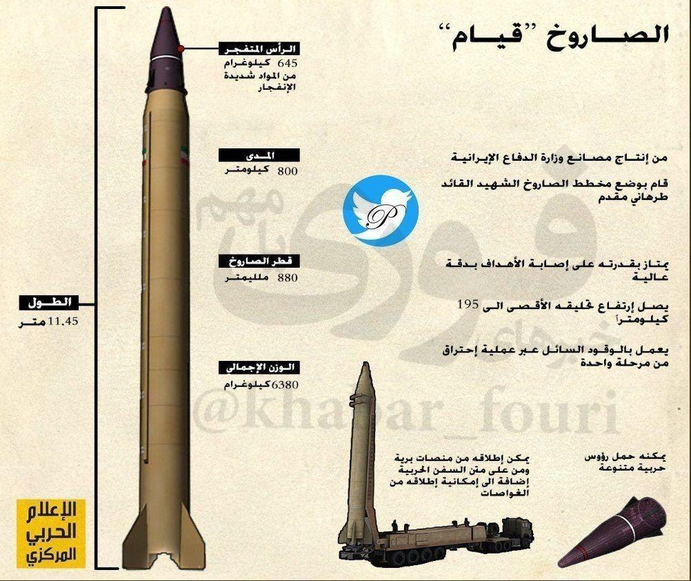 ايران_الكوثر: نشر حزب الله لبنان صورة اينفراغرافيك عن يظهر مواصفات الصواريخ من نوع قيام التي استهدفت قاعدة عين الاسد الامريكية الجوية في العراق.