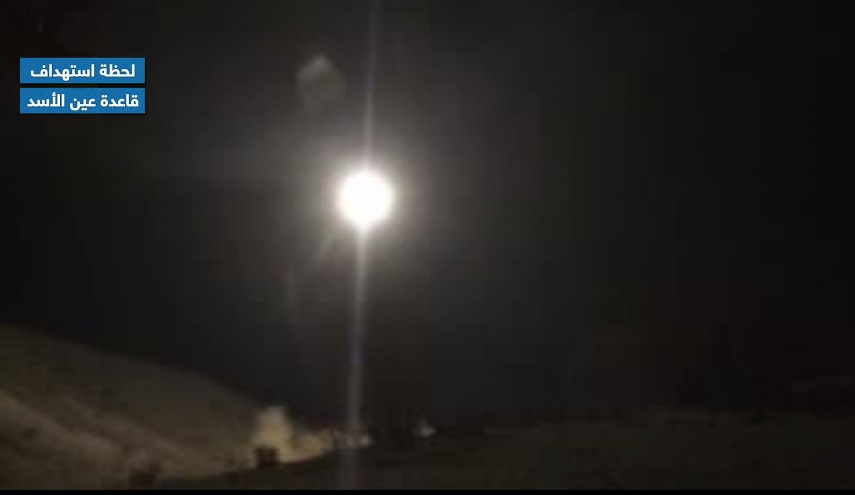 ونشر موقع الاذاعة والتلفزيون الايراني المشاهد الأولى للحظة استهداف القواعد الأميركية الارهابية بالصواريخ البالستية.