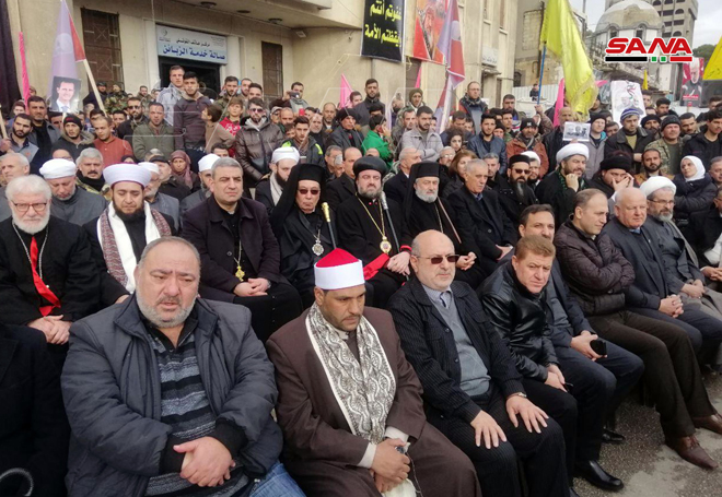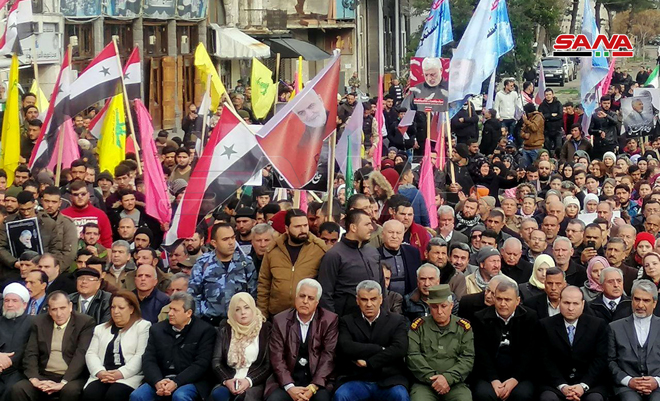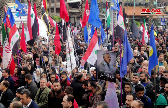 بالصور..جماهير حمص تندد بالعدوان الامريكي واغتيال سليماني والمهندس