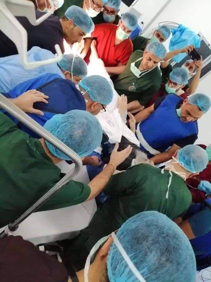تداول ناشطو مواقع التواصل الاجتماعي، صورة للمرجع الديني الاعلى آية الله السيد علي السيستاني قبل الدخول الى صالة العمليات تحيط به الكوادر الطبية.