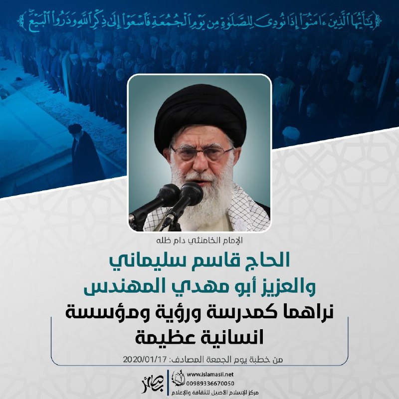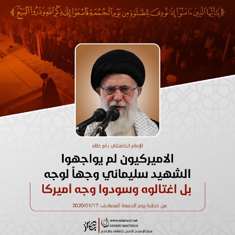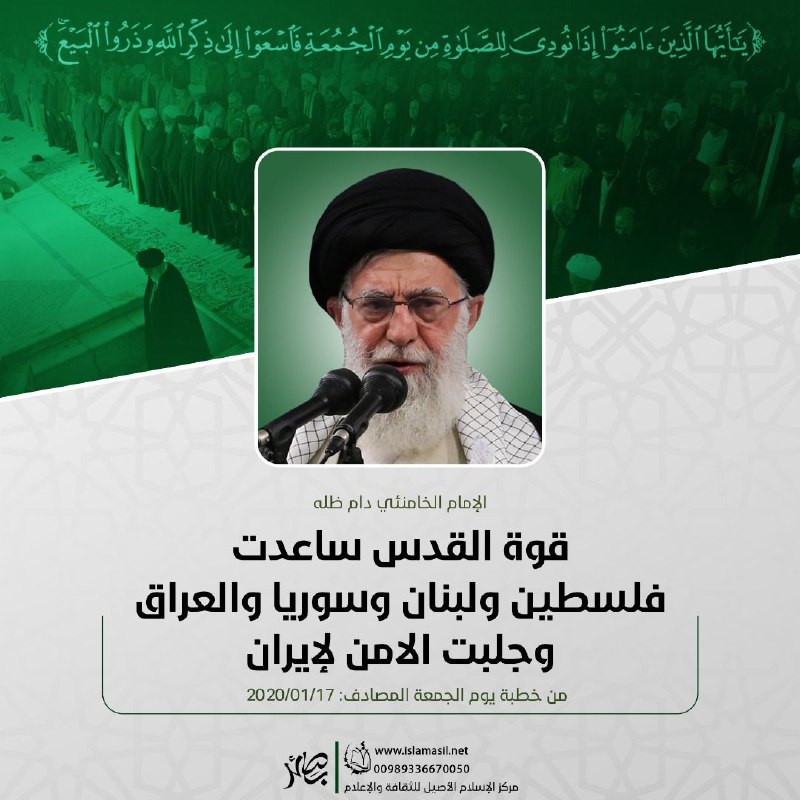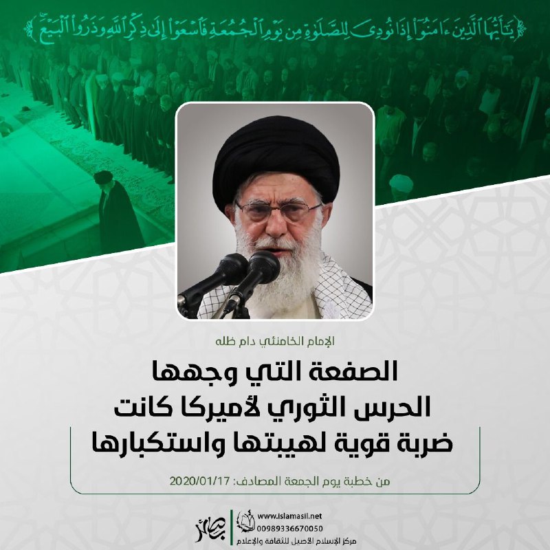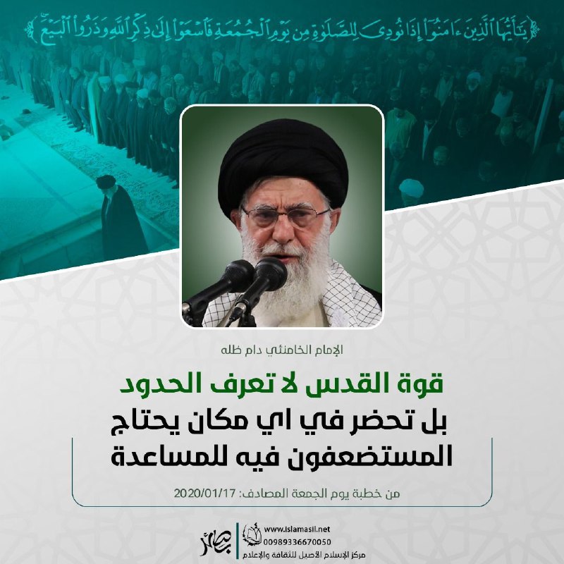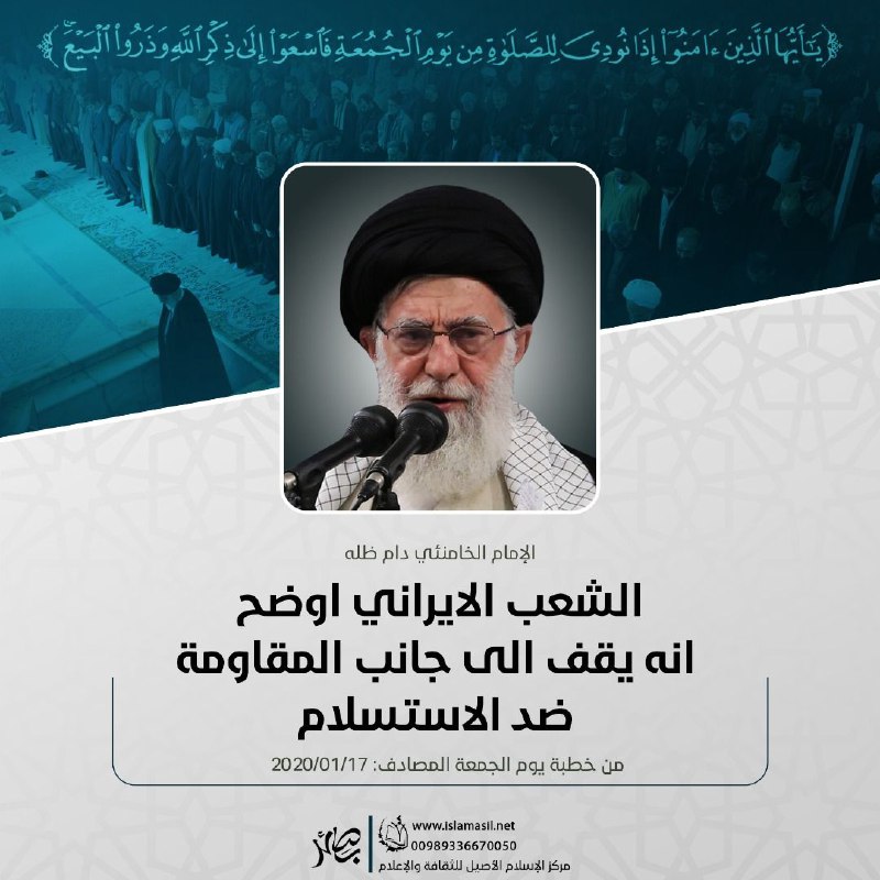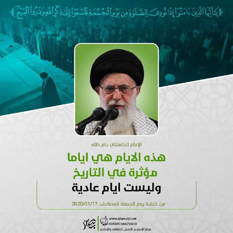 غرافيك_الكوثر: مقتطفات من كلام قائد الثورة الاسلامية آية الله السيد علي خامنئي خلال صلاة الجمعة في مصلى الإمام الخميني (رض) بطهران في تاريخ 17/1/2020