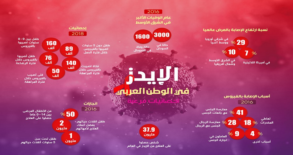 انفو غرافيك... احصائيات فيروس الإيدز في الوطن العربي