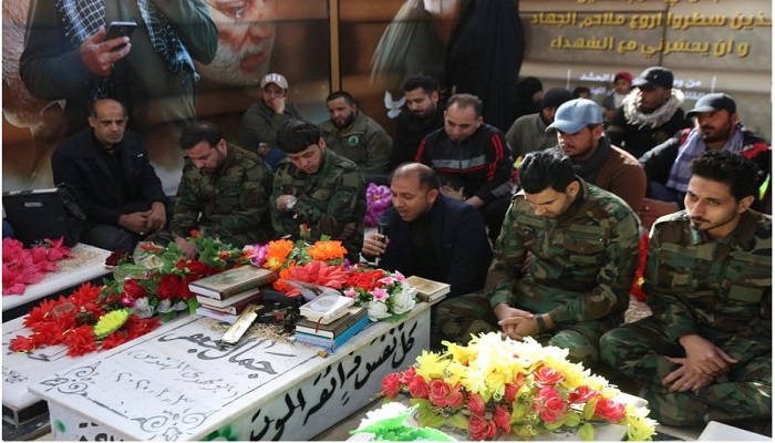 وتجدر الاشارة الى ان الشهداء كانوا قد ارتقوا الى عليين اثر ضربة جوية غادرة شنها الطيران الامريكي فجر الثالث من كانون الثاني الحالي قرب مطار بغداد الدولي.