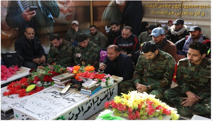 وأقام قسم القرآن الكريم في مديرية التوجيه العقائدي للحشد الشعبي في العراق محفلاً قرآنياً بجانب قبر الشهيد القائد الحاج أبو مهدي المهندس ترحماً على روحه الطاهرة وعلى روح القائد قاسم سليماني ورفاقهما الابرار.