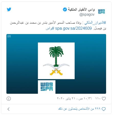 أعلن الديوان الملكي السعودي، اليوم الثلاثاء، وفاة الأمير بندر بن محمد آل سعود.