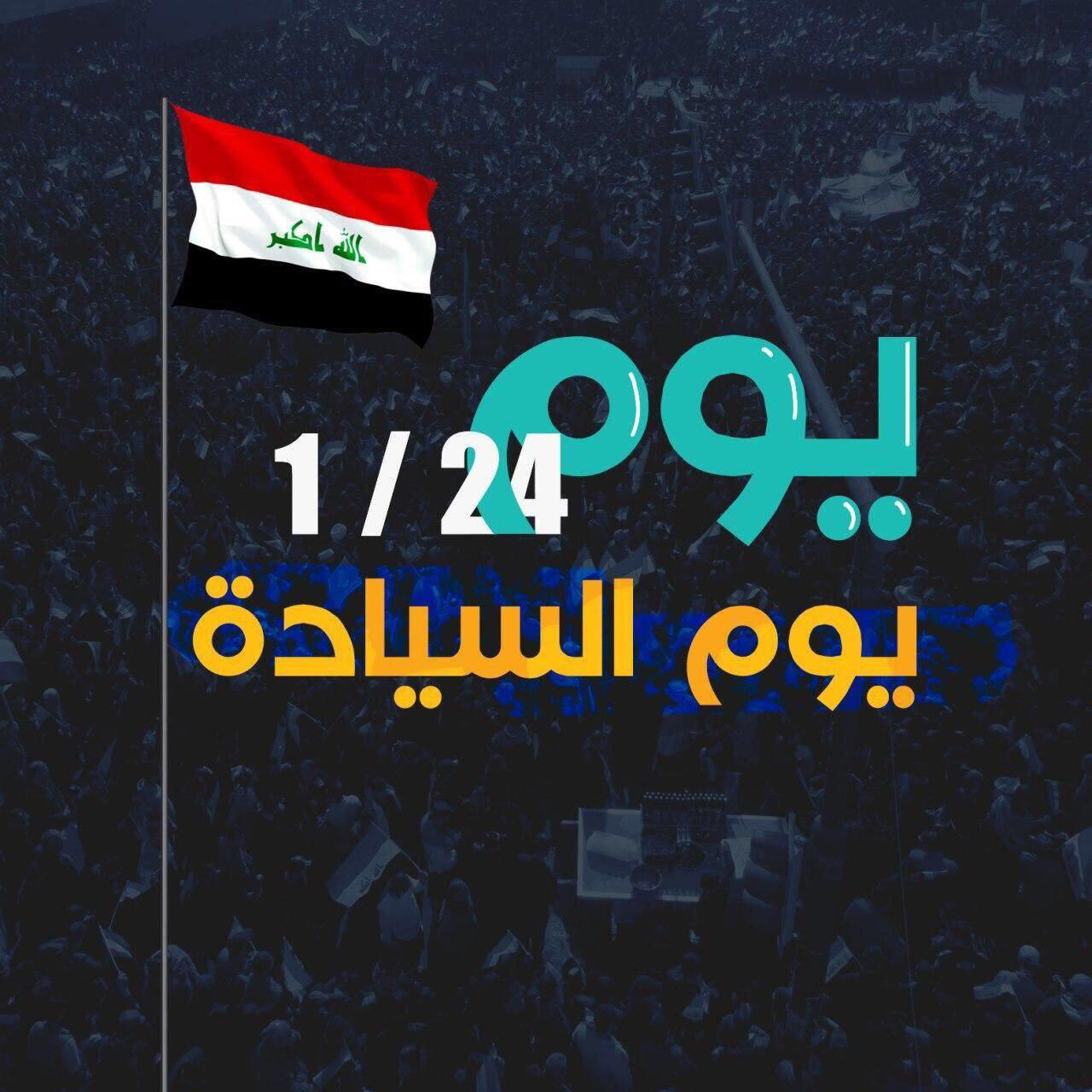 وفي احدى الملصقات "البوسترات" التي انتشرت على مواقع التواصل الاجتماعي في العراق جاءت الدعوة للتظاهرة المليونية تحت عنوان "يوم 24/1 يوم السيادة".