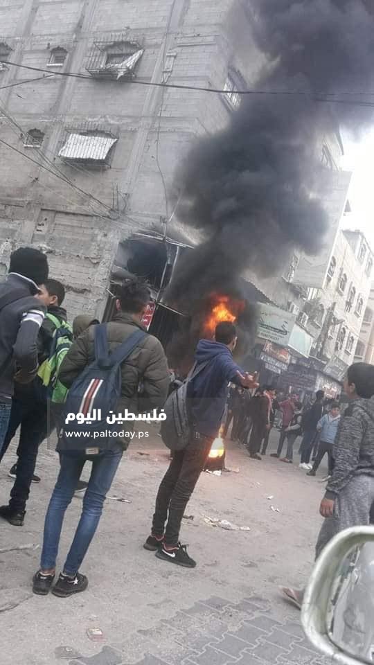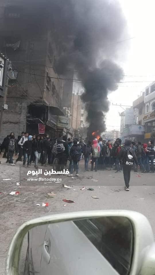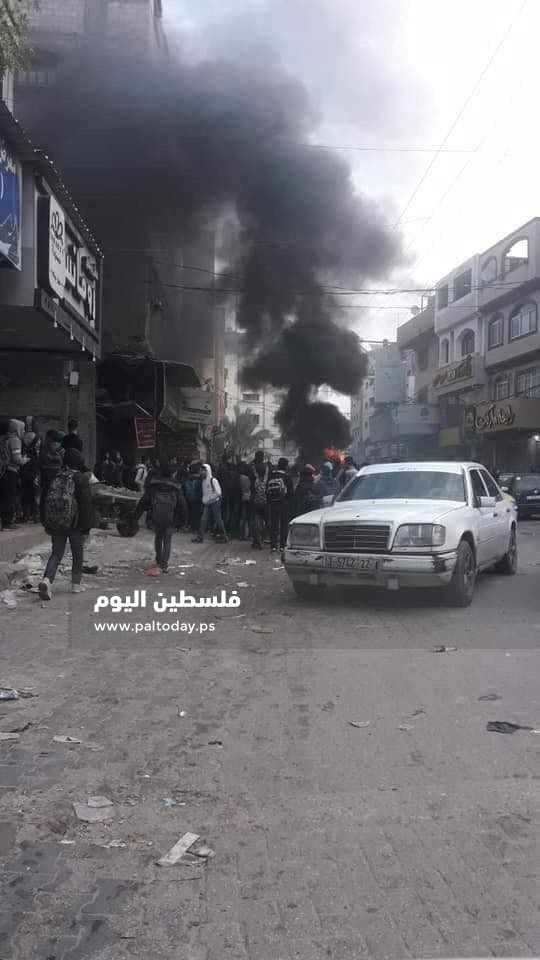 وقد خرج طلاب المدارس في مخيم جباليا شمال القطاع، في مسيرات عفوية، وأشعلوا الإطارات احتجاجاً على إعلان الصفقة.