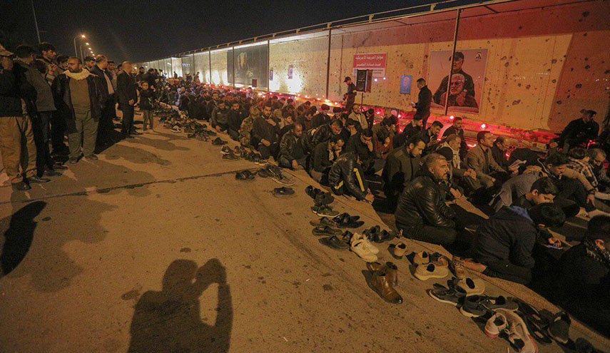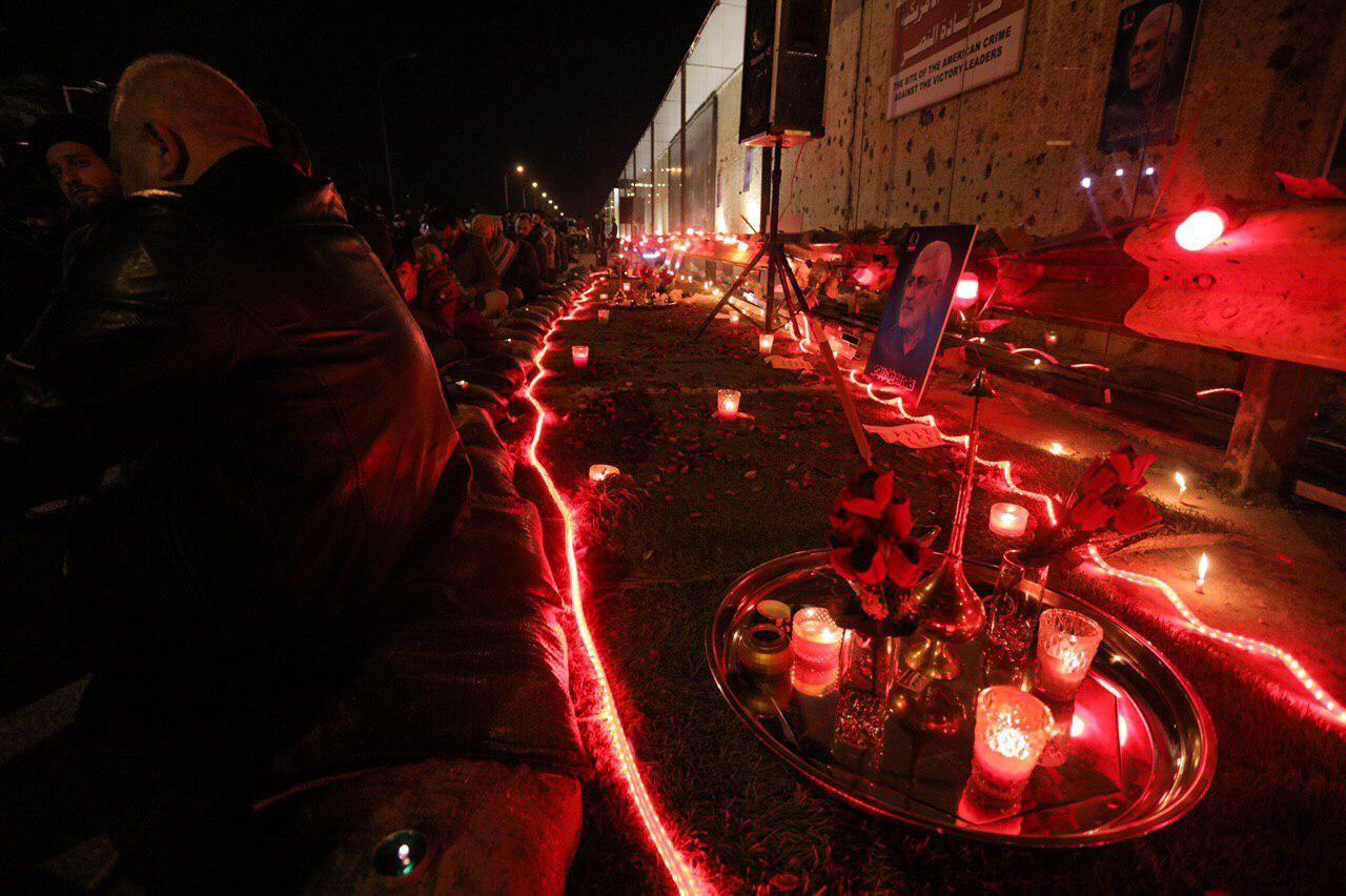 وتناقلت مواقع التواصل الاجتماعي صورا لمراسم اقامة مراسم دعاء كميل اقيمت في محيط مطار بغداد الدولي الذي شهد الجريمة الارهابية التي اسفرت عن استشهاد قائد فيلق القدس الفريق قاسم سليماني ونائب هيئة الحشد الشعبي العراقي ابو مهدي المهندس.