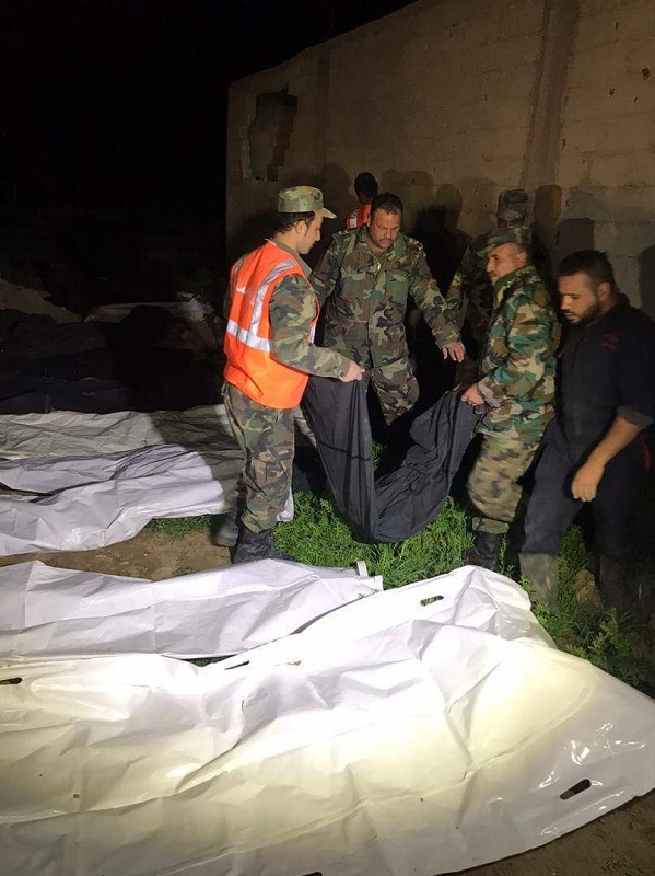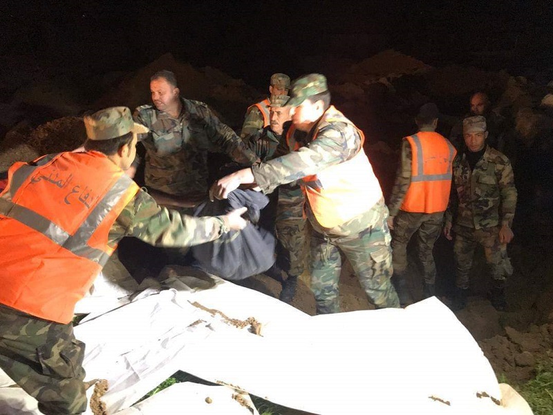 ذكر مصدر عسكري سوري، أن الجيش عثر على مقبرة جماعية في منطقة مزارع العب قرب بلدة دوما في ريف دمشق، فيها رفات أكثر من 70 شخصا من المدنيين والعسكريين.
