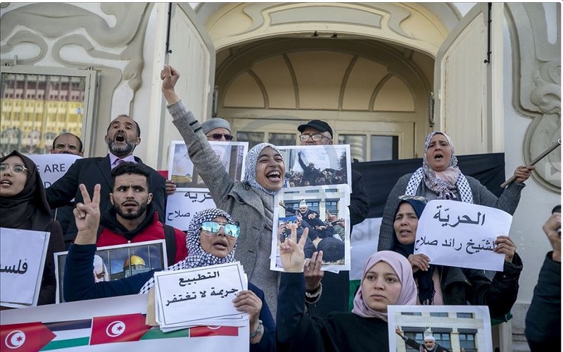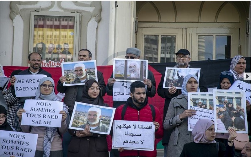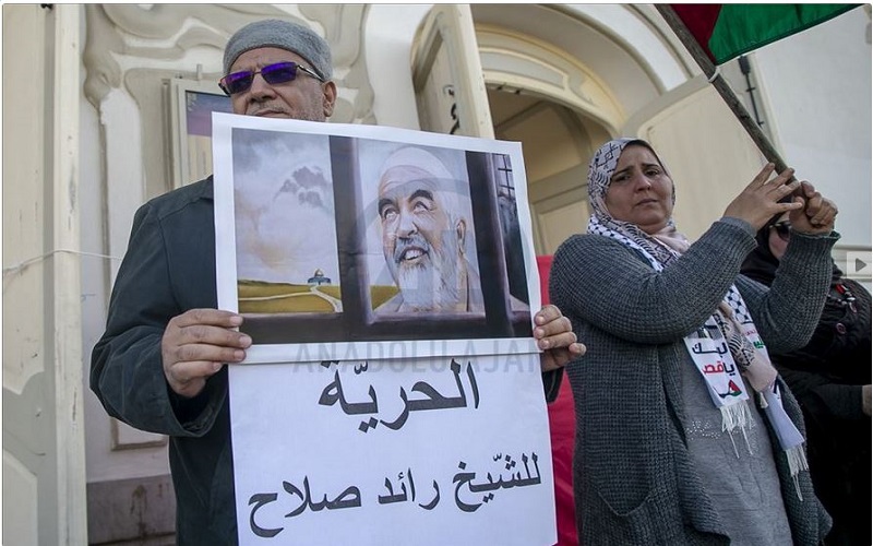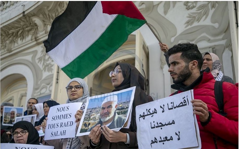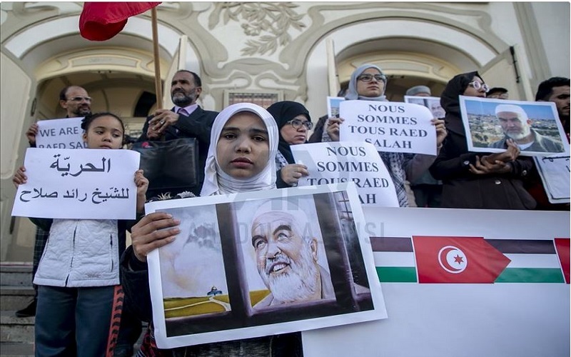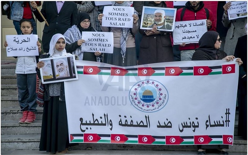 وورفع المتظاهرون خلال الوقفة التي جرت أمام المسرح البلدي وسط العاصمة تونس بدعوة من "جمعية أنصار فلسطين"، لافتات كتب عليها عبارات من قبيل "الحرية للشيخ رائد صلاح"، و"جميعنا رائد صلاح"، و"أقصانا لا هيكلهم، مسجدنا لا معبدهم".