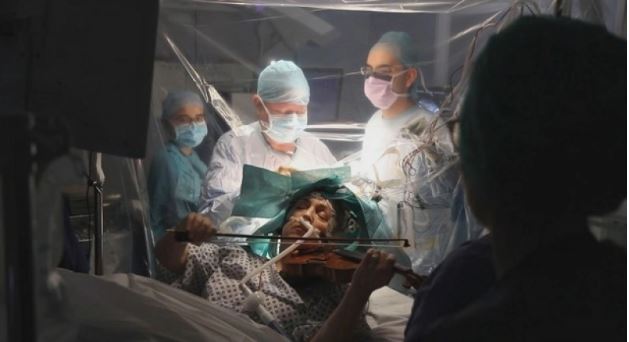 وفي واقعة تشبه الأفلام عزفت مريضة في مستشفى (Kings College Hospital) في لندن على آلة الكمان خلال خضوعها لعملية جراحية لإزالة ورم من دماغها.