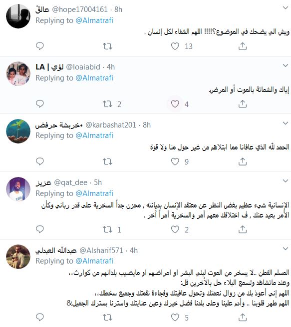 ورد المغردون على هذا الكاتب وقال أحدهم "احذر الشماتة في الكوارث! الله يحفظنا بحفظه ولا يورينا غضبه".