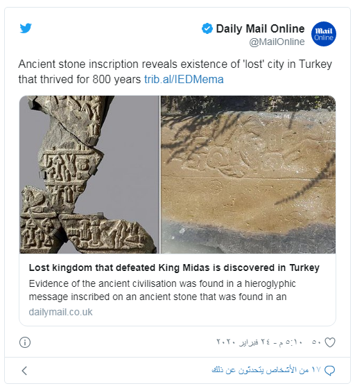وتشير النقوش على الحجر إلى أن المدينة هزمت "فريجيا"، المملكة التي حكمها كين ميداس، الذي يملك "لمسة ذهبية" حسبما يقال. وكُتب على الحجر: "جلبت آلهة العاصفة الملوك إلى جلالته".