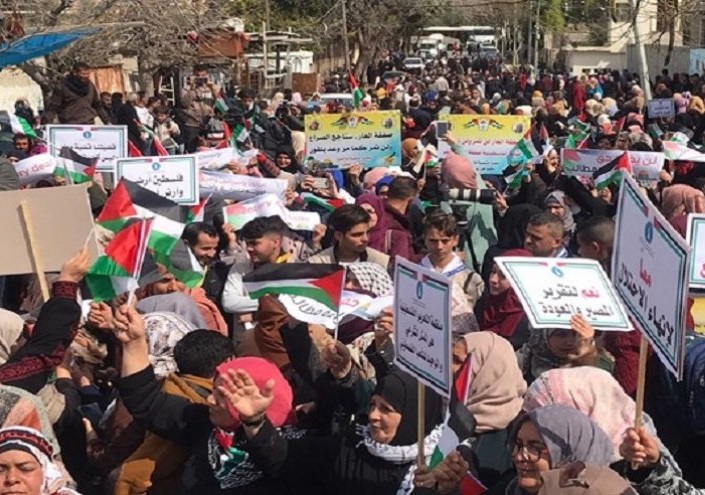 وبحسب وكالة " معا" الاخبارية ، فقد شاركت النساء في التظاهرة الحاشدة أمام مقر الامم المتحدة بغزة تلبية لدعوة من وزارة المرأة والاتحاد العام للمرأة الفلسطينية ضمن احتفالات الثامن من أذار للتأكيد على دور المرأة الفلسطينية في رفض صفقة ترامب.
