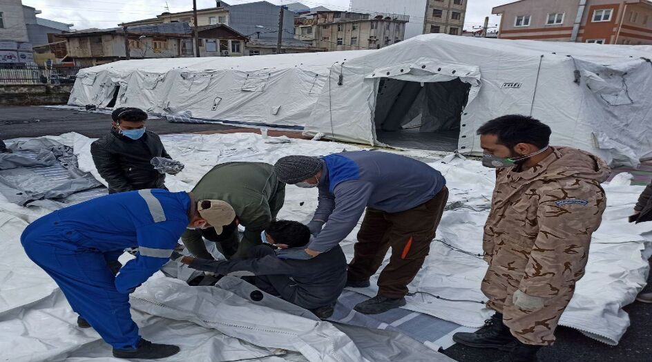وحسب تقرير وكالة انباء فارس من مدينة رشت، انه في ضوء زيادة عدد المصابين بفيروس كورونا واشغال جميع الاسرة الطبية في مستشفيات مدینة رشت ومحافظة جيلان، وبأمر من القائد العام للحرس الثوري ومتابعة قائد فيلق القدس بمحافظة جيلان، تم انشاء مستشفى متنقل في فناء مستشفى رازي بمدينة رشت من قبل القوة البحرية للحرس الثوري.
