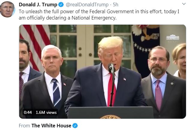يشار إلى أنه منذ عام 1976 أعلن كل رئيس أمريكي حالة طوارئ وطنية واحدة على الأقل، وأعلن الرئيس السابق أوباما حالة الطوارئ في عام 2009 خلال وباء إنفلونزا الخنازير.