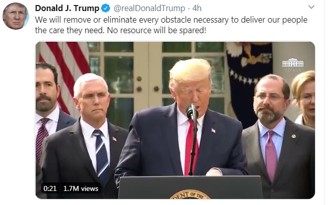 كما ذكر ترامب أن شركة "غوغل" تعمل على تطوير موقع إلكتروني، سيسهل على الأمريكيين إجراءات الفحص الخاصة بفيروس "كورونا" المستجد.