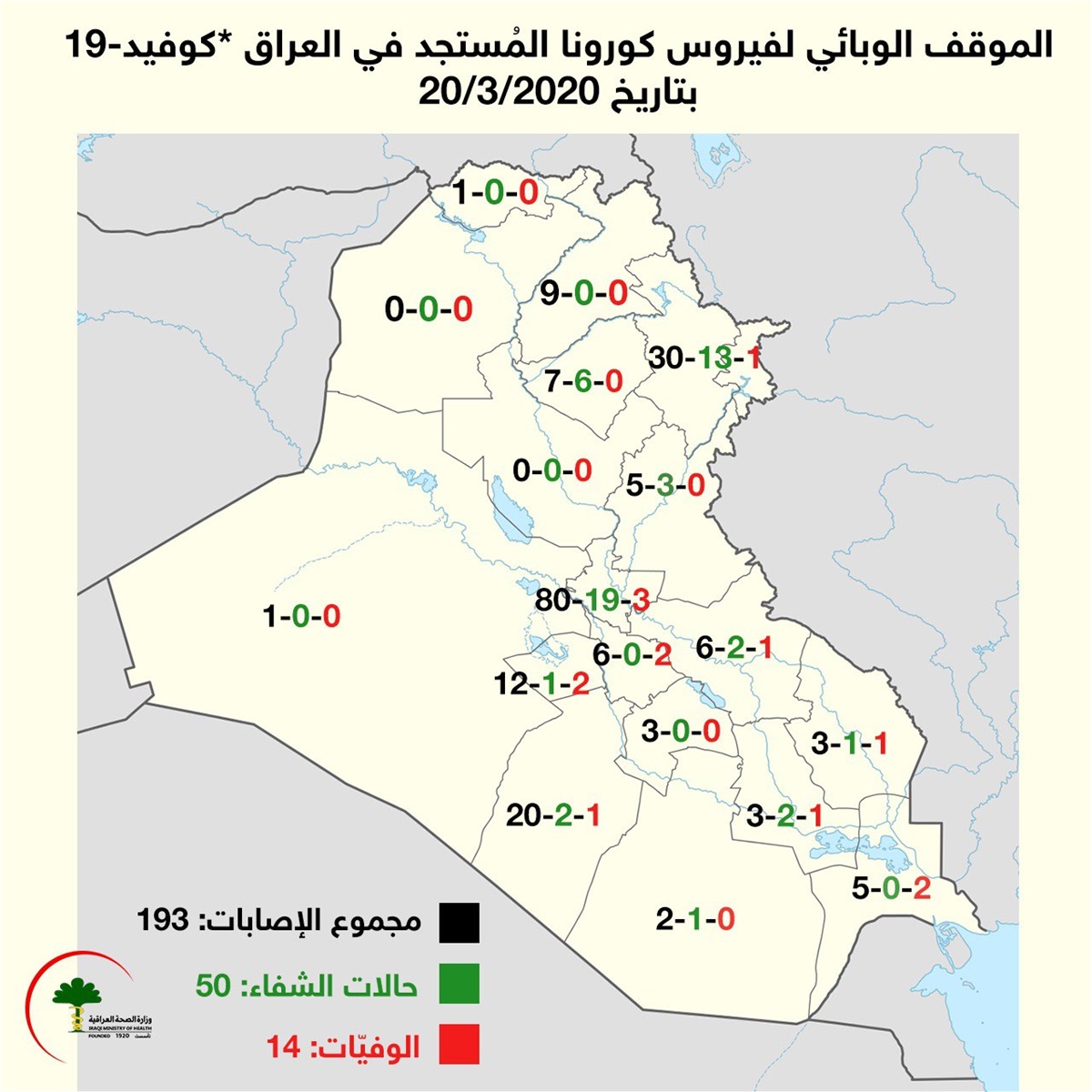 وأظهرت خارطة الموقف الوبائي بالارقام، آخر التطورات بشأن وفيات وإصابات وحالات الشفاء بفيروس كورونا في المحافظات العراقية.