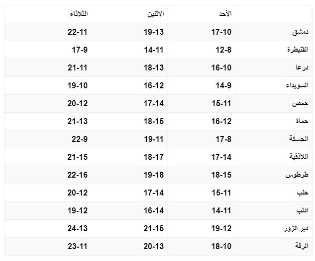 درجات الحرارة المتوقعة لأيام …