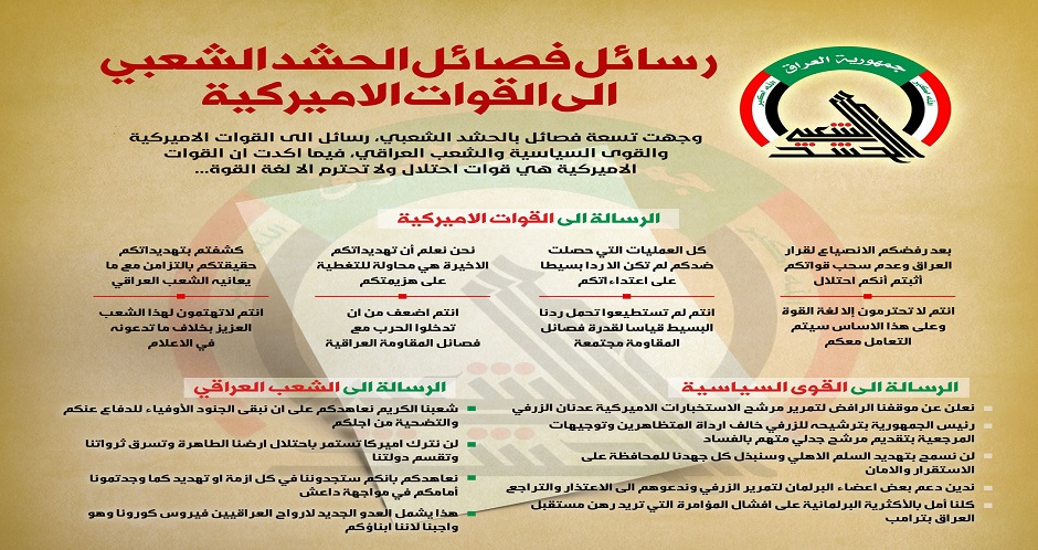 رسائل فصائل الحشد الشعبي الى القوات الأمريكية