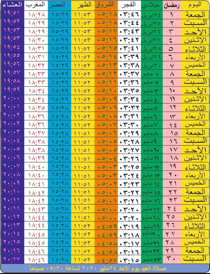 ومن الجدير بالذكر أنه سيتم التأكيد على الإمساكيات الرمضانية في مختلف الدول العربية بمجدر ثبوت هلال شهر رمضان المبارك وعدد ساعات الصوم في مختلف الدول العربية يترواح بين 14 ساعة ومن الممكن أن يزيد عن 15 ساعة على مدار شهر رمضان الكريم بأكمله.