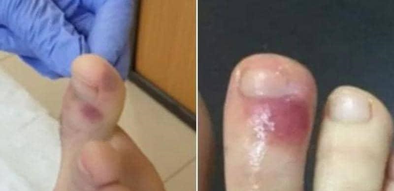 وأشار الأطباء إلى ظهور كدمات على القدمين لدى بعض المرضى، معتبرين ذلك من "العلامات الإيجابية للإصابة بالفيروس"، وتحدثوا عن بقع أرجوانية اللون تشبه علامات الإصابة بمرض الجدري المائي.