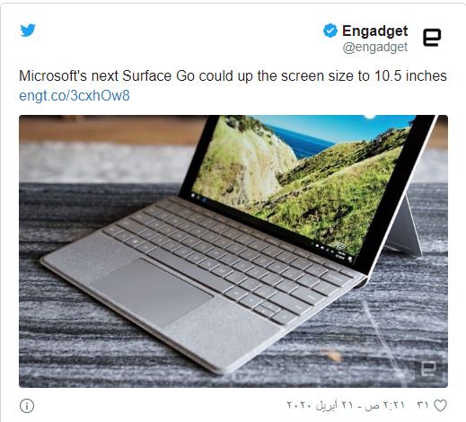 وأوضح المصدر أن مايكروسوفت تجهز حاليا لإطلاق حاسب "سرفس غو" اللوحي، والذي سيأتي بشاشة لمسية أوسع بقياس 10.5 بوصة، وبدقة عالية تبلغ 1920×1280 بيكسل.