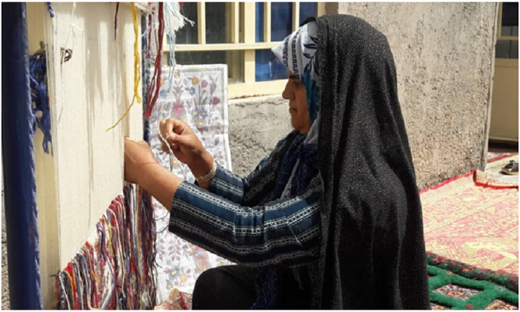 وبرعت السيدة زهراء رنجبر من اهالي القرية وبرغم فقدانها للسمع في حياكة الكليم منذ اكثر من 35 عاما.