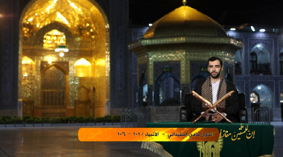 ان للمتقين مفازا- خاص الكوثر: تلاوة عطرة للقارئ الدولي "هادي إسفیداني" في المسابقة القرآنية " إن للمتقين مفازا" مما تيسر له من سورة الأنبياء (101_106) من حرم الامام الرضا عليه السلام.