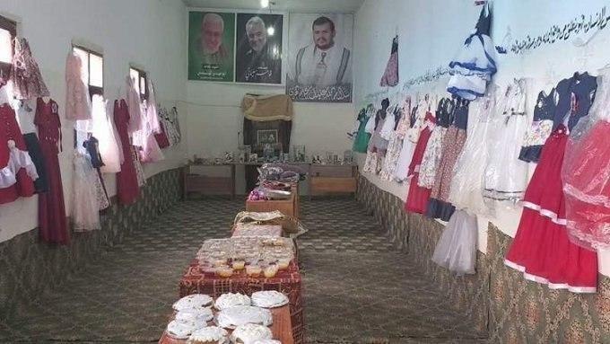 يحتوي المعرض على مشغولات يدوية وملبوسات وإكسسوارات ومطرزات وكيك وحلوى وكل ما يتعلق بمتطلبات عيد الفطر من إنتاج أسر الشهداء.