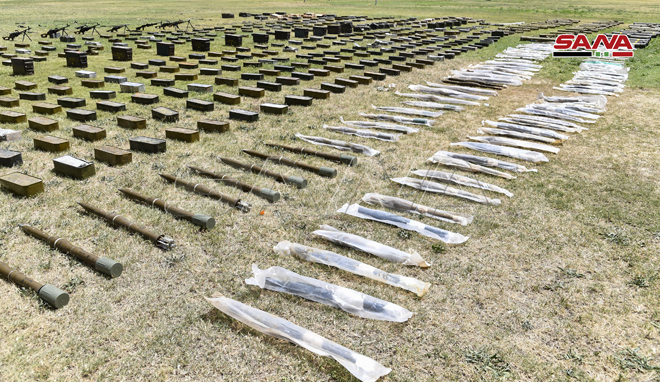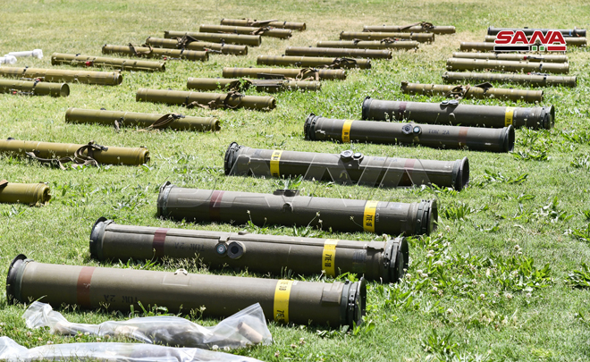ونقلت وكالة "سانا" السورية الرسمية عن مصدر في الجهات المختصة قوله إنه خلال أعمال تمشيط مناطق في ريفي درعا والسويداء من مخلفات الإرهابيين تم بالتعاون مع الأهالي ضبط كميات من الأسلحة والذخائر من بينها صواريخ أمريكية وإسرائيلية الصنع.