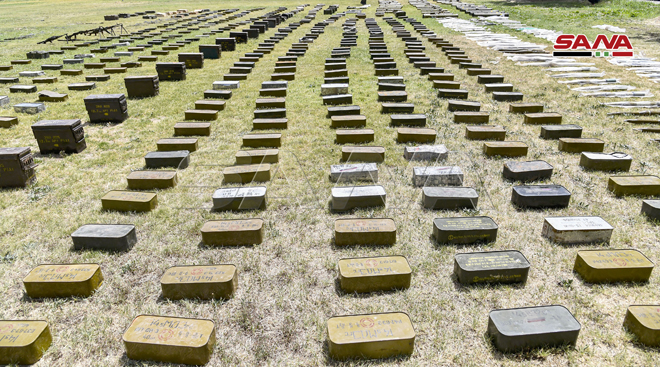 وعثرت وحدات الجيش السوري خلال عمليات تمشيط على امتداد المناطق المحررة من الإرهاب على عشرات الأنفاق ومستودعات الأسلحة والذخائر معظمها غربي الصنع وكميات كبيرة من المعدات اللوجستية إضافة إلى مقرات قيادة وتحكم كانت تستخدم للاعتداء على المناطق الآمنة ونقاط الجيش السوري.