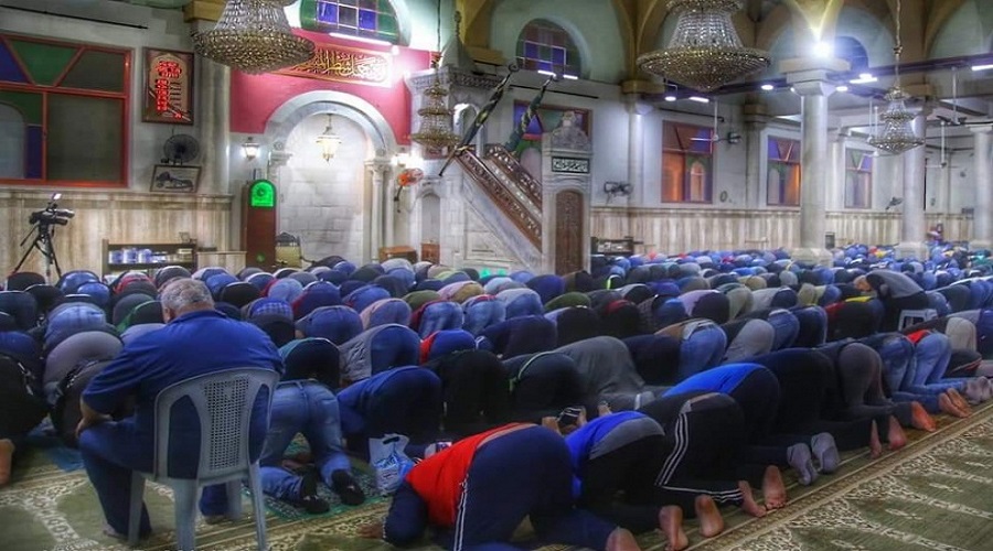 وتوافد المصلون الى المساجد وفق الاجراءات الصحية والوقائية وبعد تعقيم المساجد يوم امس.