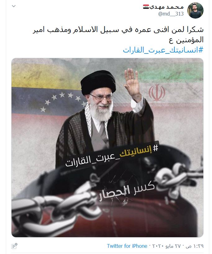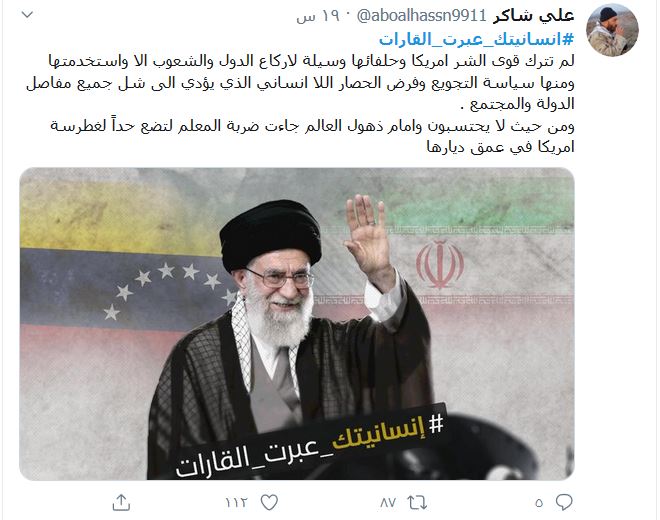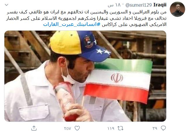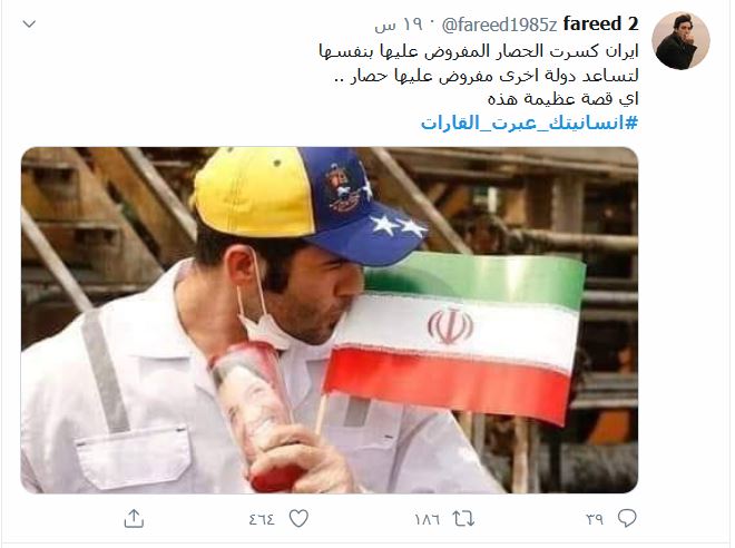 وقارنوا عزة ايران بتخاذل بعض الدول العربية التي تطأطئ رأسها امام الغرب، كما سخروا من قناة العربية السعودية التي نشرت اكاذيب مضحكة عن فنزويلا وايران ووصفوها بالمغتاظ الذي يحاول حجب الشمس بالغربال.