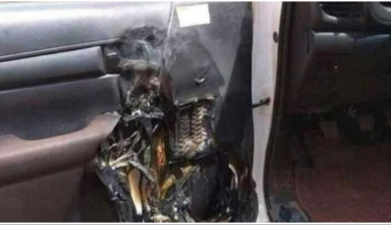 ونشرت صورة تظهر آثار انفجار مطهر في سيارة، ودعت سائقي السيارات إلى توخي الحذر في الصيف في ظل إجراءات مكافحة عدوى فيروس كورونا المستجد.